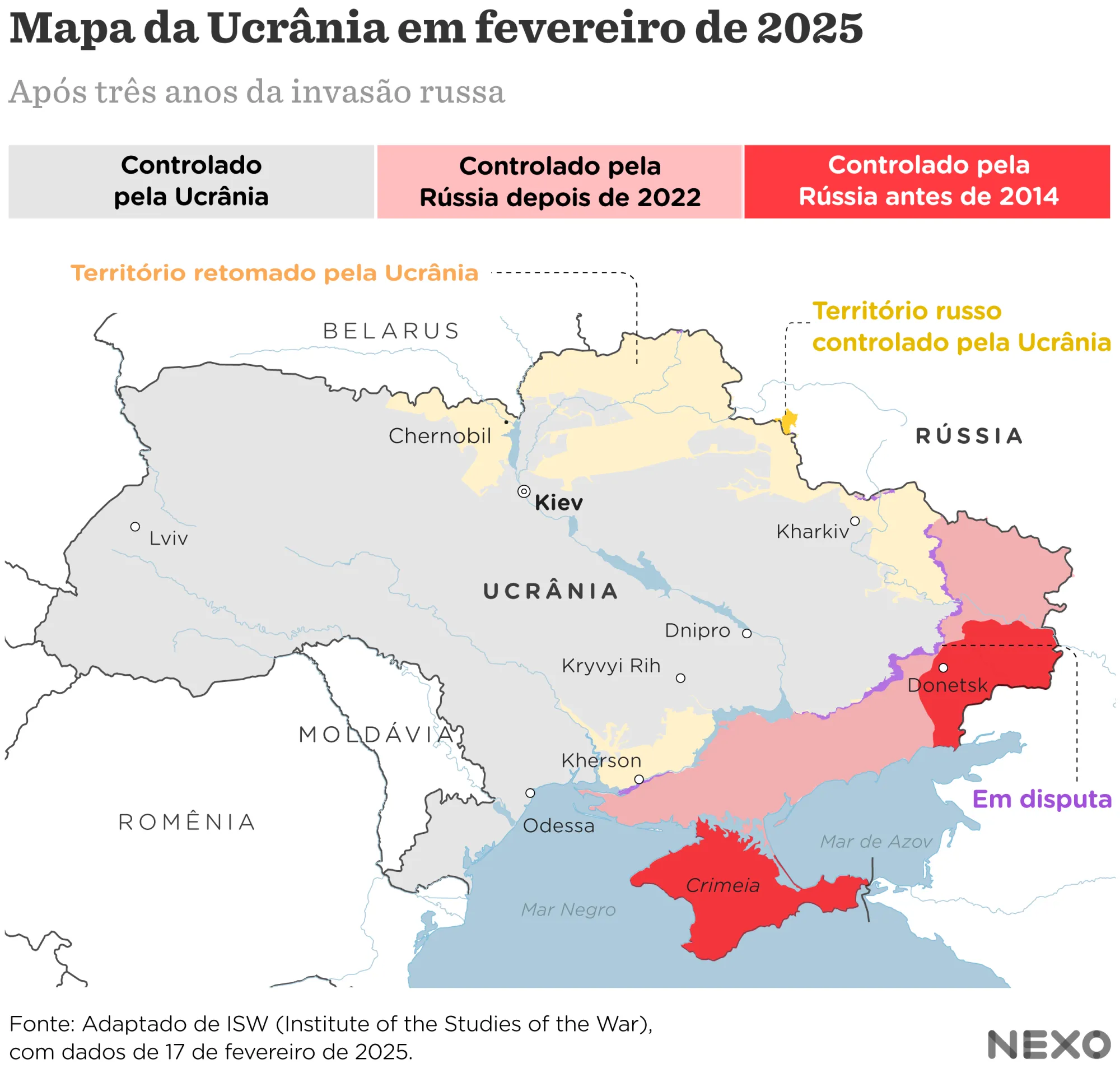 - Segundo o presidente russo, as exigências recentes dos países europeus para encerrar a invasão da Ucrânia como retirada de tropas ou aceitação de termos de paz seriam “inaceitáveis” para Moscou.